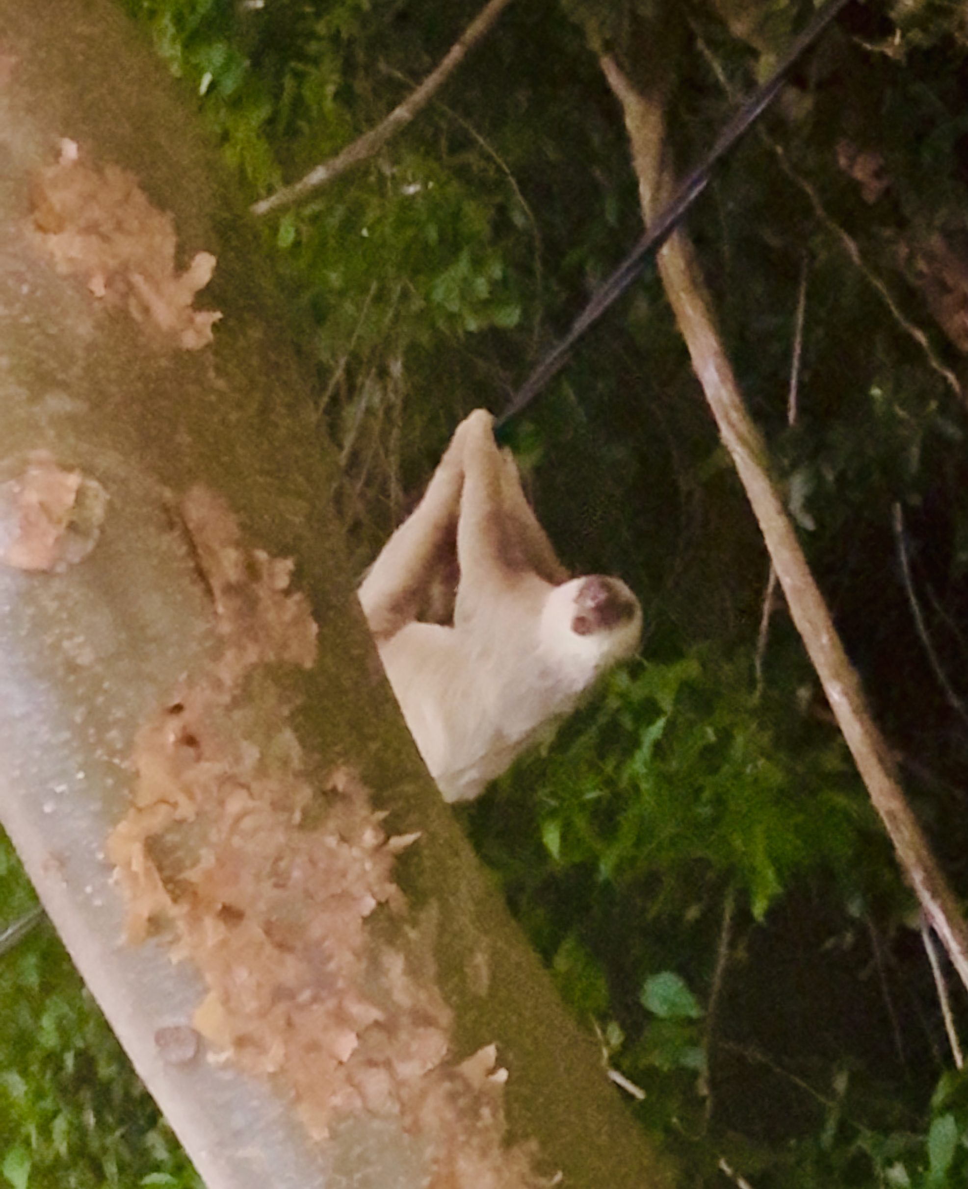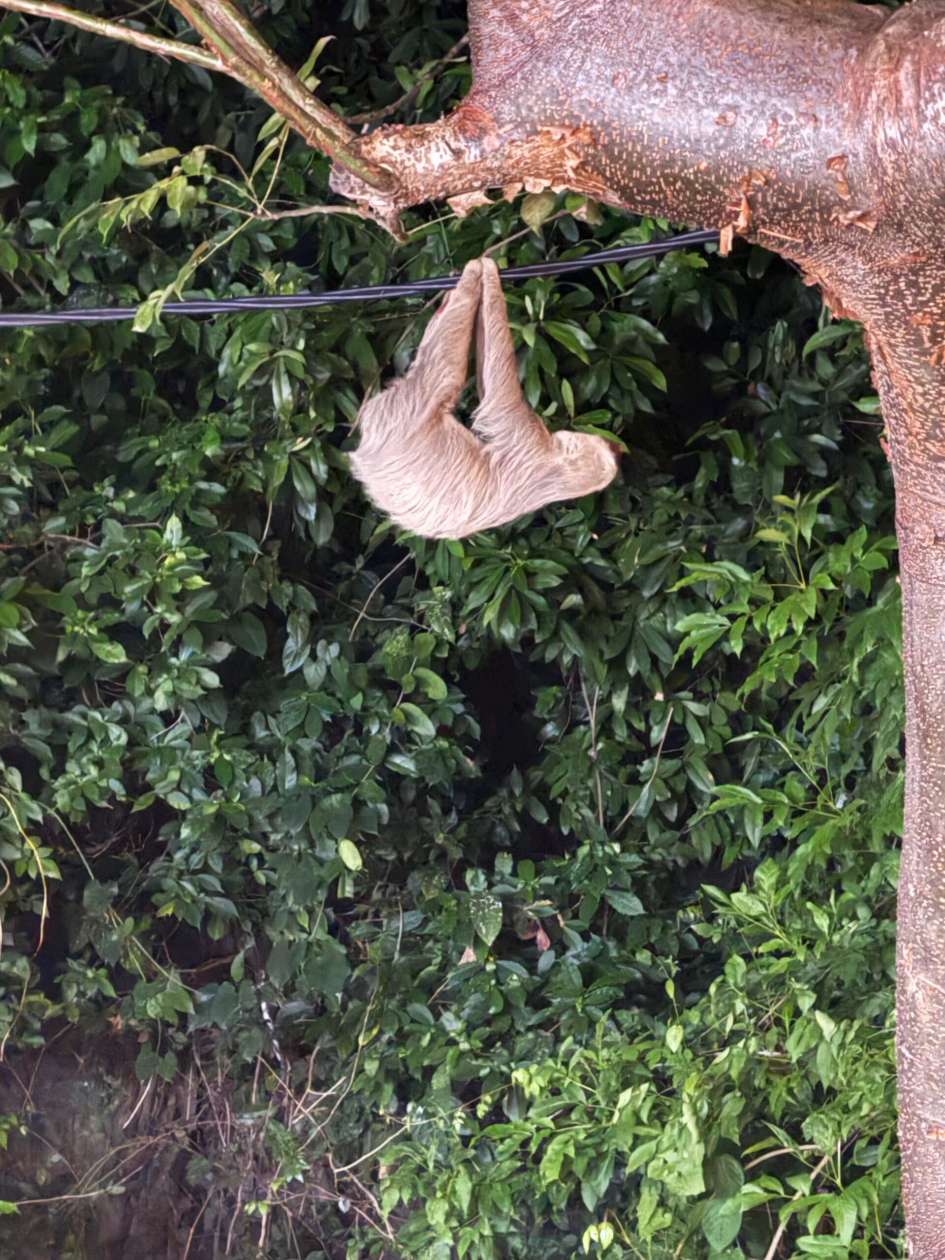 Our go-to sloth-sighting spot was an electrical wire just outside La Playita Marina. We saw several sloths there—on many occasions—always at dusk.