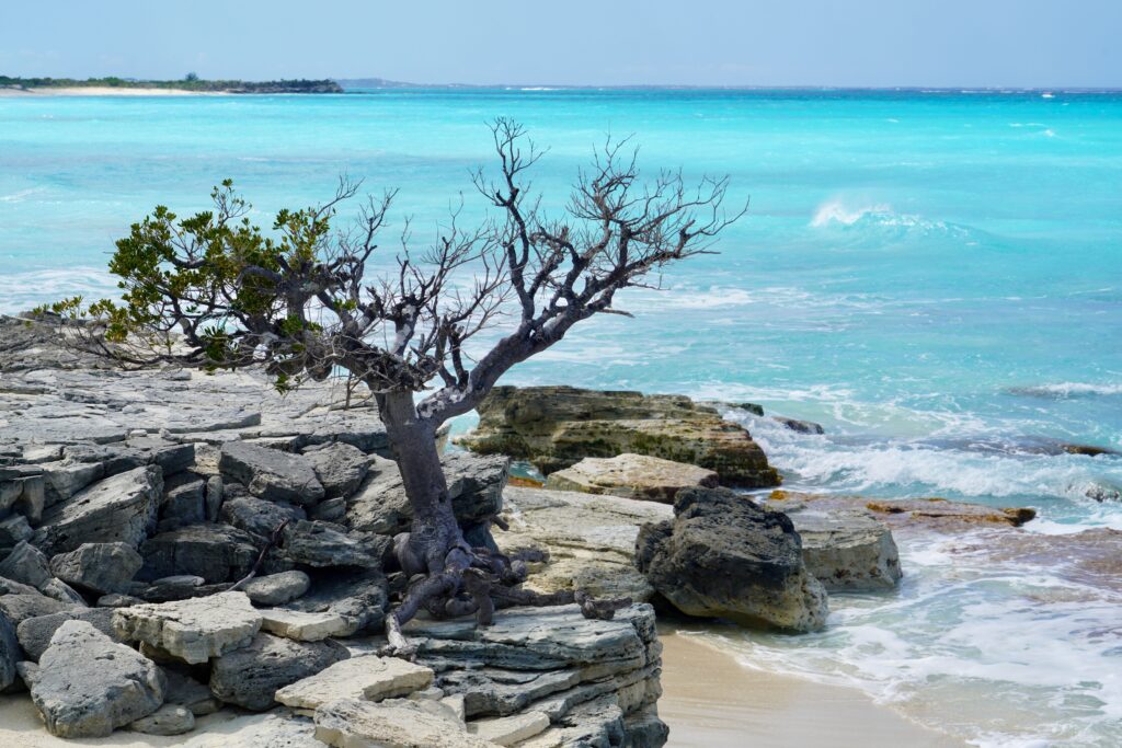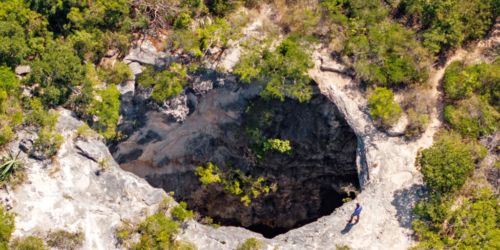 Because the water at the base is connected to the ocean through subterranean conduits, the pool’s level rises and falls with the tides of the nearby Caicos Bank. While it is a popular stop for curious travelers and hikers, the site remains entirely wild and unimproved; there are no railings, fences, or safety barriers along the perimeter, so extreme caution is required when approaching the edge. Historically, local legends have long surrounded The Hole, with some tales suggesting it was once used as a source of fresh water or even a site for hidden treasures. Today, it stands as a raw reminder of the “Swiss cheese” limestone topography that defines the Turks and Caicos archipelago.