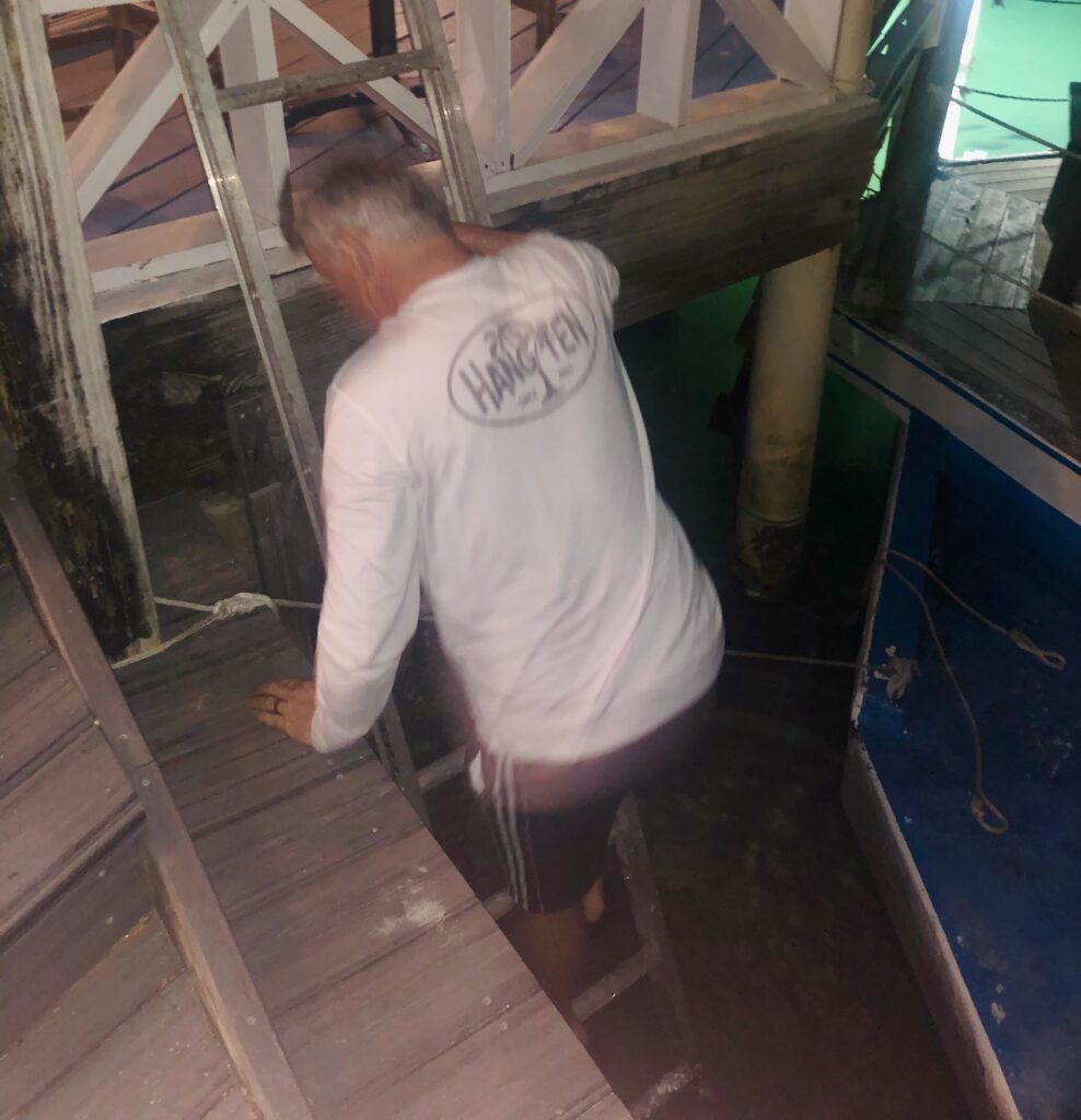Everyone rallied with us as Roy climbed down a ladder into the water. Luckily, we were able to retrieve it.