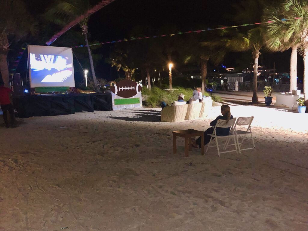 We were there for the Super Bowl. They staged a nice all-inclusive event for football fans. At first, there were several rows of chairs. Every seat was taken.