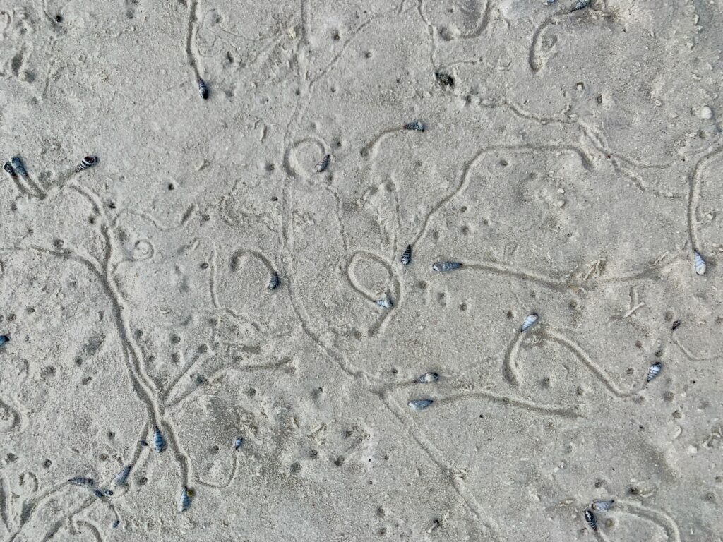 And a plethora of hermit crabs. Their paths were marked in the sand like art.